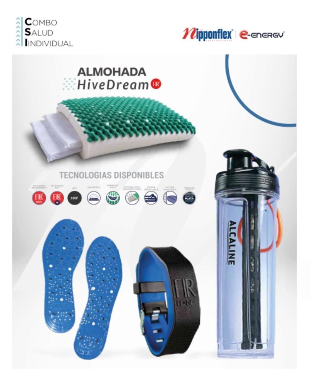 Los productos Nipponflex, como pulseras y plantillas, buscan potenciar cuerpo y mente utilizando tecnología japonesa Fir Power, magnetos y iones negativos para mejorar la circulación, reducir dolores, aumentar la energía y equilibrar el cuerpo. Se enfocan en el bienestar integral, la estabilidad y la reducción de estrés.